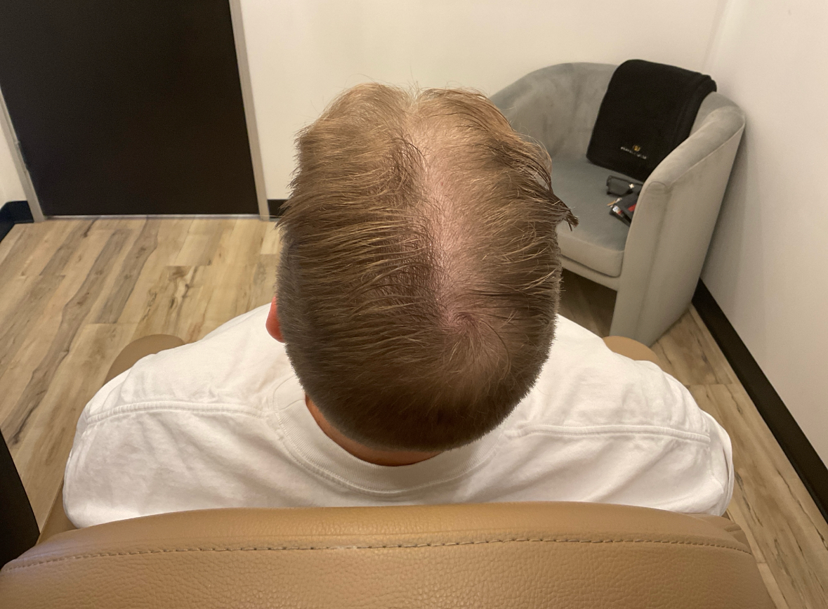 Results Seen: Two weeks after the treatment, patients generally notice less hair shedding and the first signs of new growth.